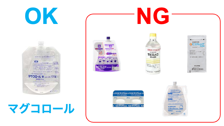 モビプレップ®、ニフレック®にはNGの記載はありませんが、不可として運用していくのが安全です。