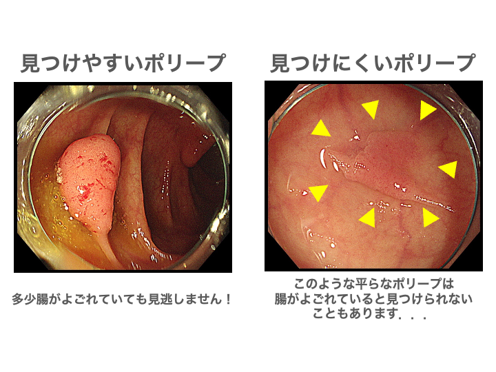大腸がきれいにならないと、ポリープなどの病変の見逃しにもつながります。