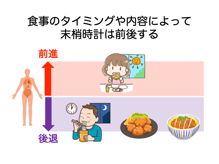 先ほどお話ししたように、末梢時計は朝食の刺激で前進します。