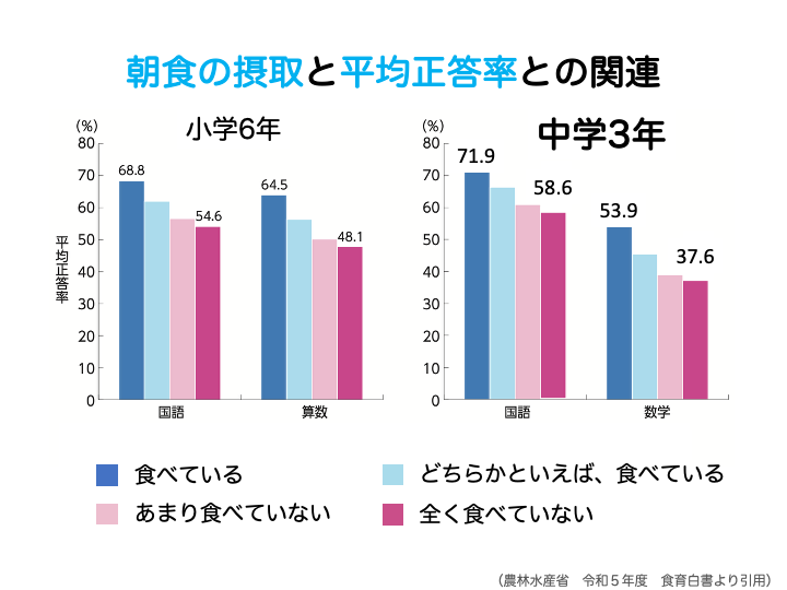 朝ごはんを食べると、みんなが学力や体力が上がるというわけではありませんが、