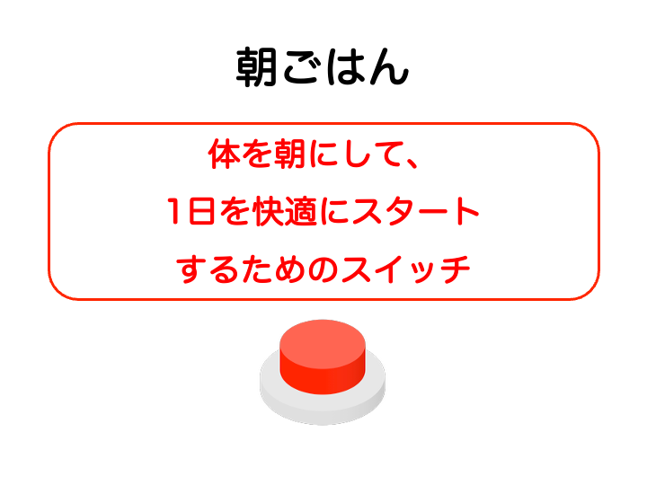 今回は、「朝ごはんは、体を朝にして、1日を快適にスタートするためのスイッチ」という内容で、