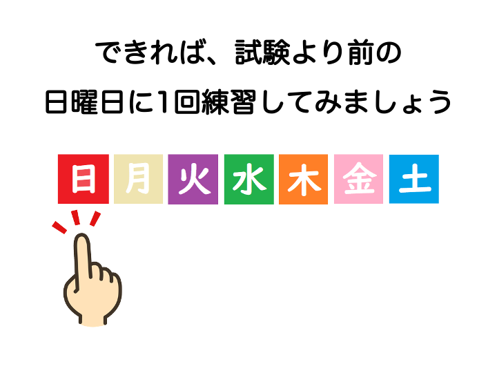 試験当日に確実いい体調で過ごせるように、ぜひ一度試験前の休日などにリハーサルをしてみてください。
