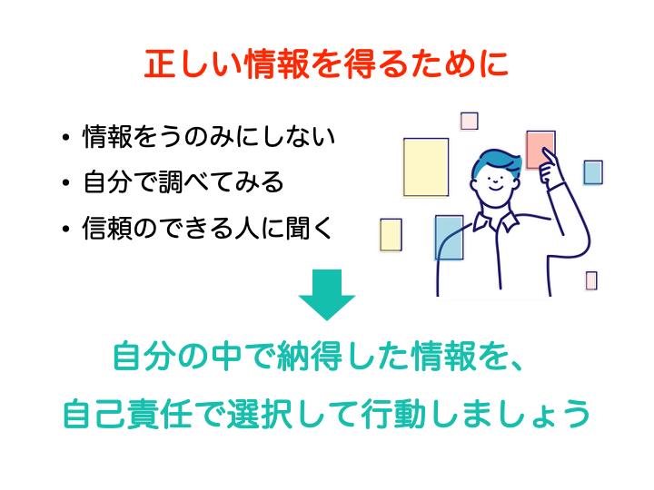 最初に伝えたいことは、正しい情報を得る努力をしてほしいということです。